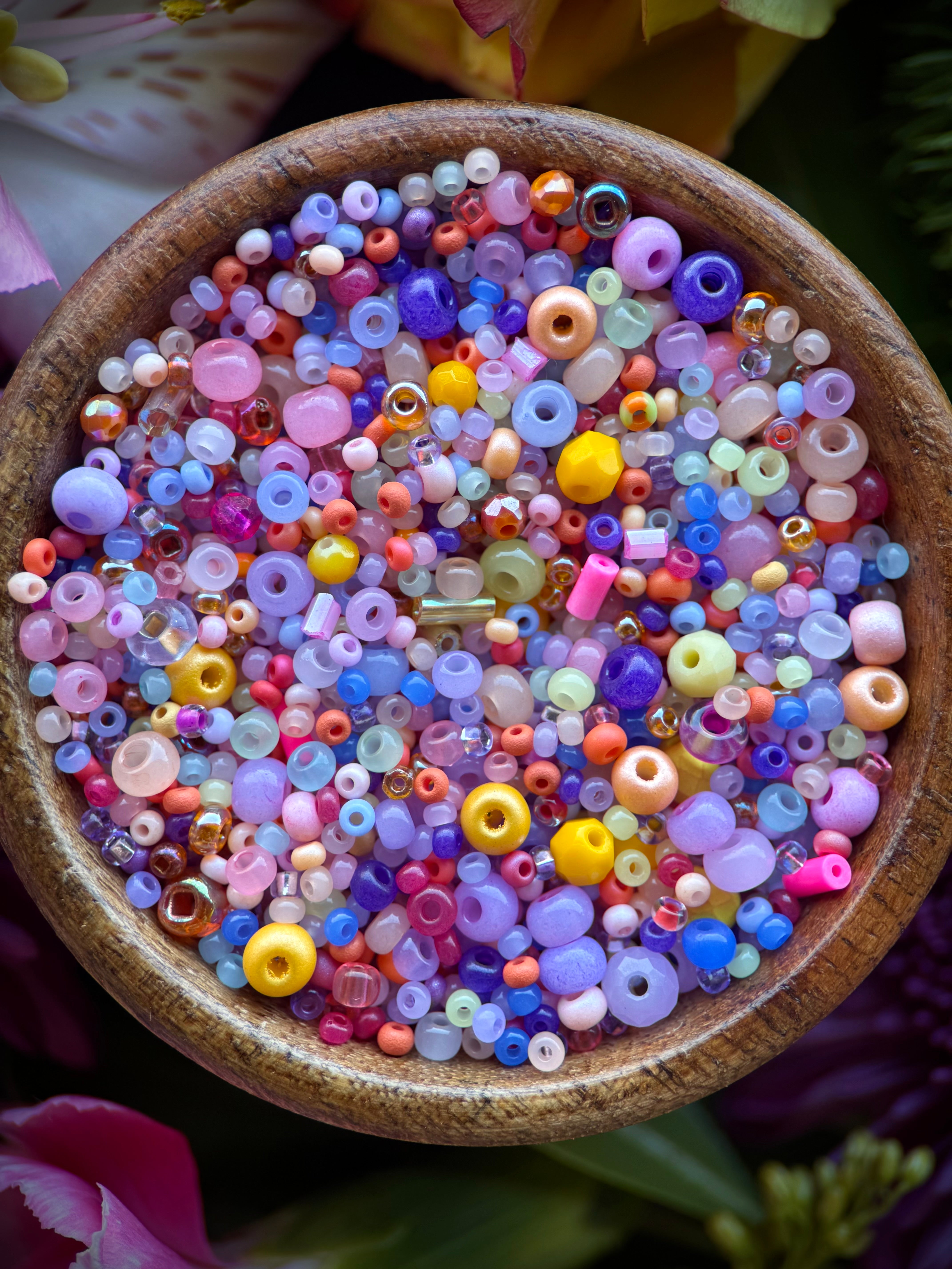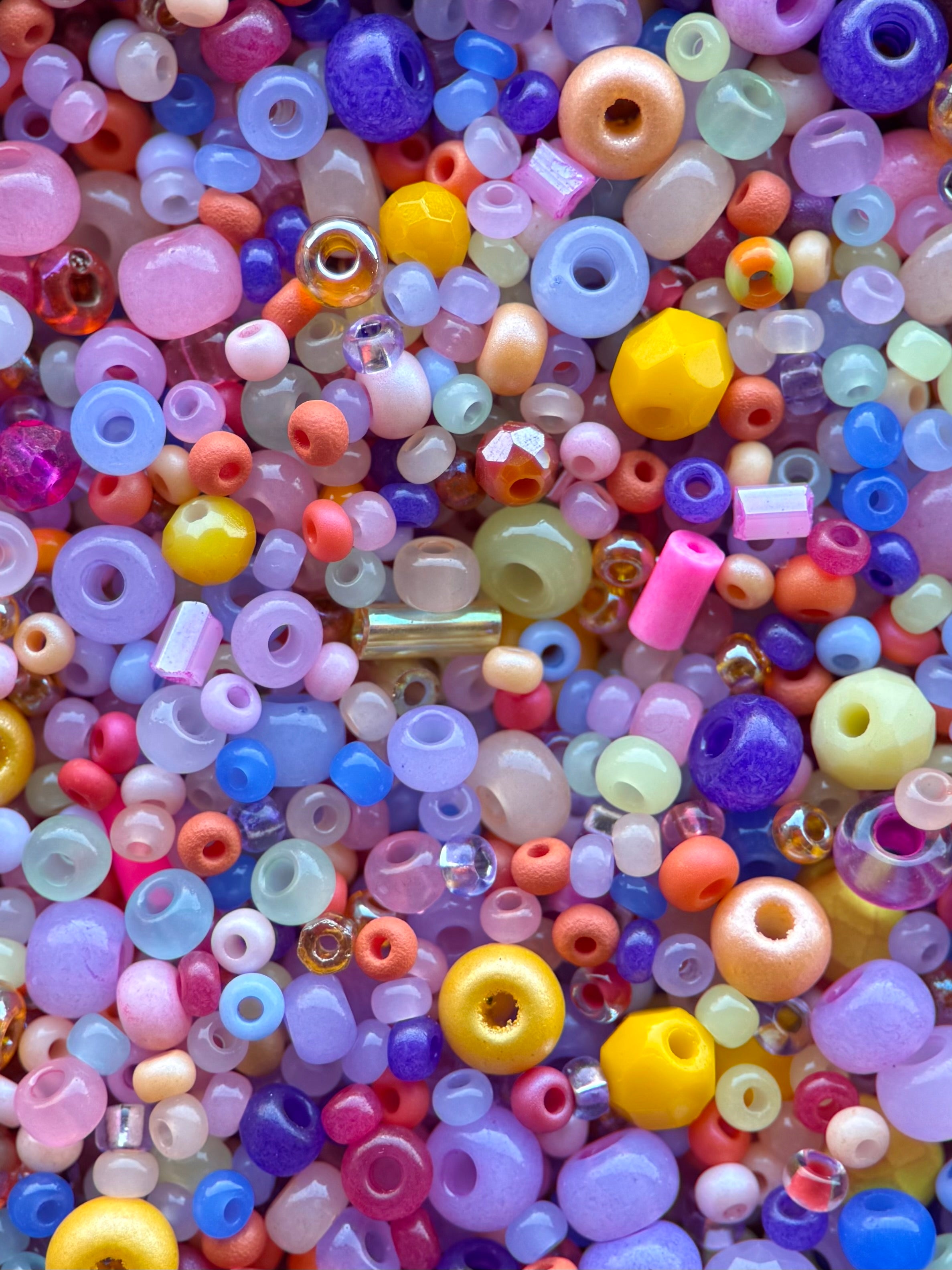 This unique and one-of-a-kind mix includes various sizes of seed beads, glass crystals, and firepolished beads. With a chunky 50 gram mix, you'll have everything you need to create unique and eye-catching designs. Don't miss out - once it's gone, it's gone! (Limited quantities available)