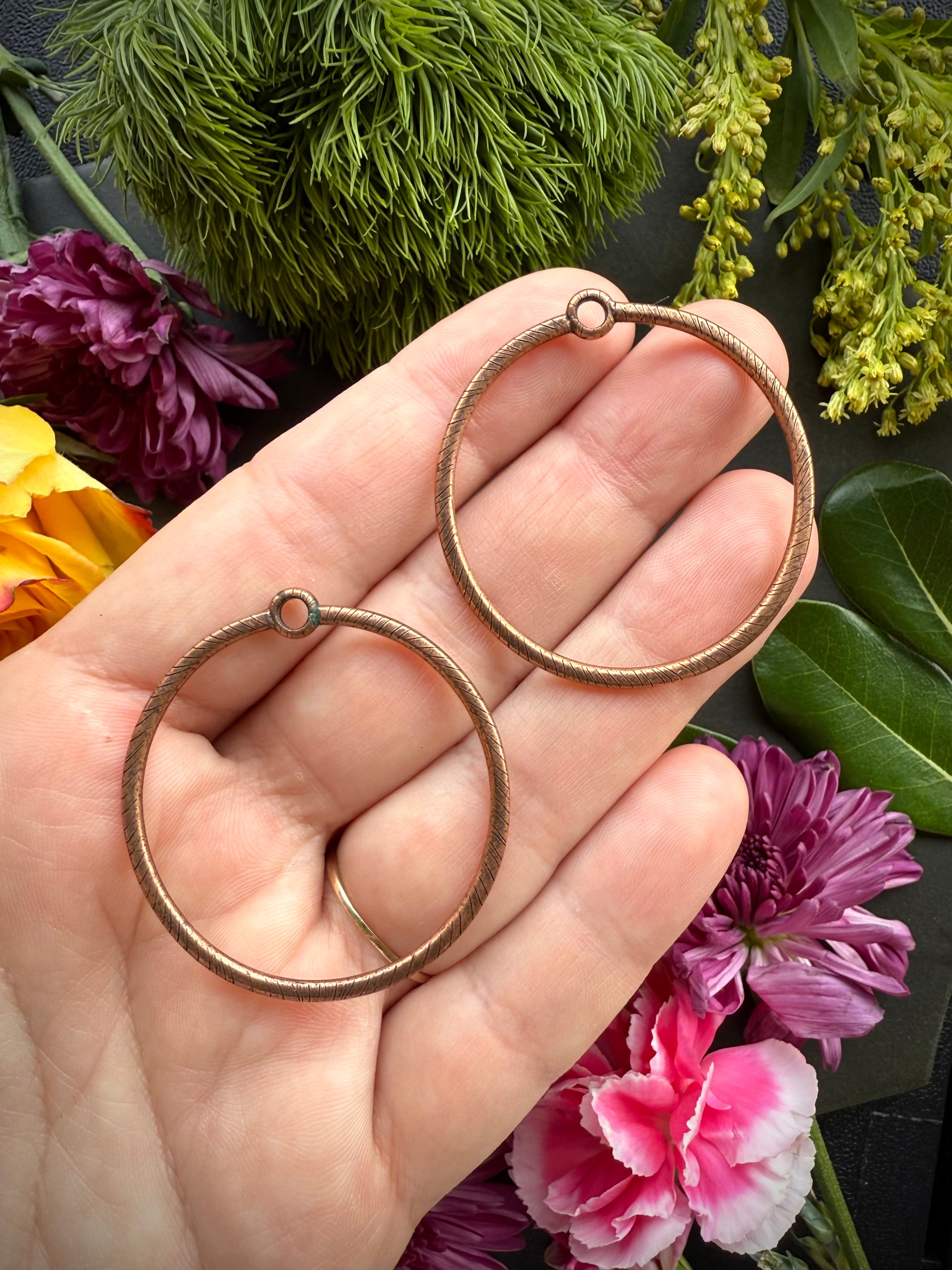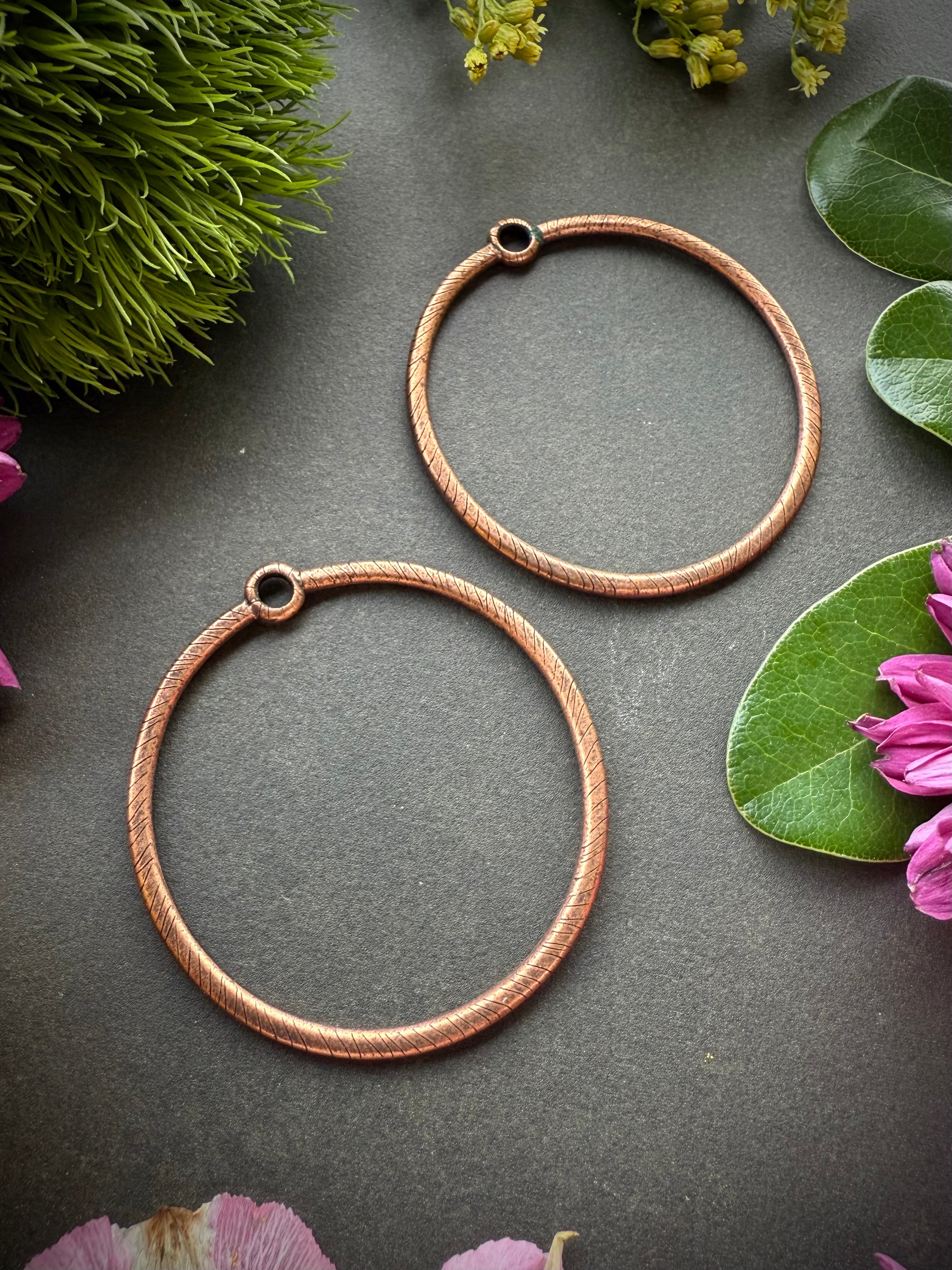 Large 42mm Etched Round Circle Hoop- Antique Copper