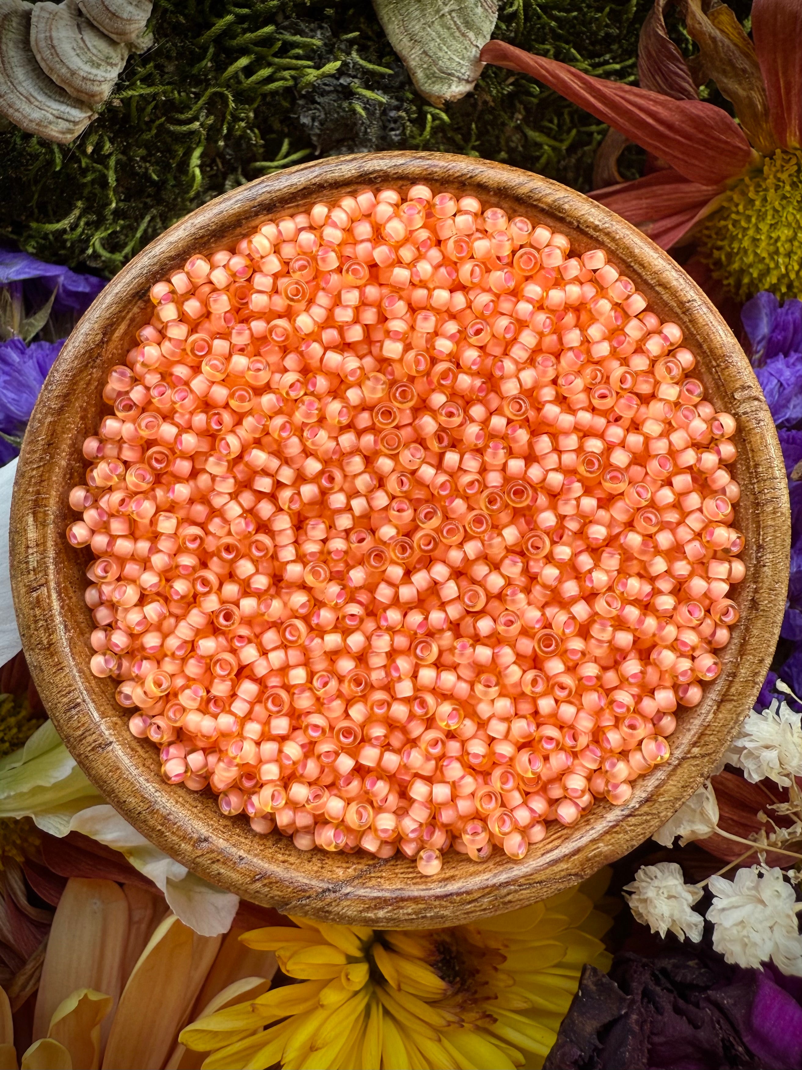 Size 11/0 Miyuki Round- 91935 Semi-Matte Salmon Lined Amber